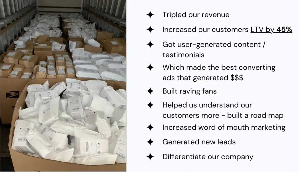 You continue to use this strategy to increase repeat customers, increase your customer LTV, get more user-generated content than you'll ever know what to do with, increase word of mouth marketing... and ultimately SCALE your brand 🙌